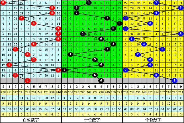 在百位前9次出现号码2之后,下期百位离别开出奖号:3-6-5-3-2-7-9-5-4,其中开出号码个数大小比是5:4,012路比是4:2:3,奇偶比是6:3。